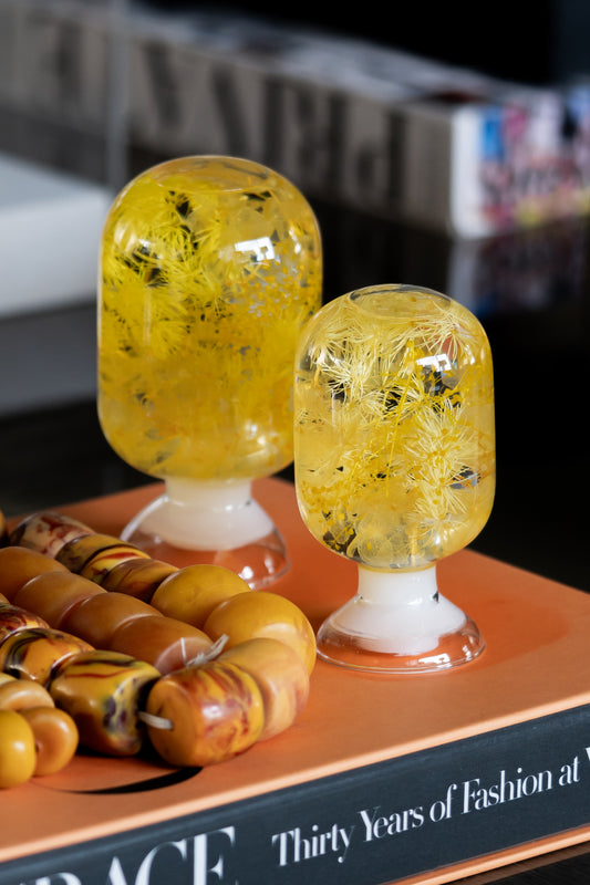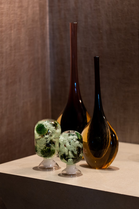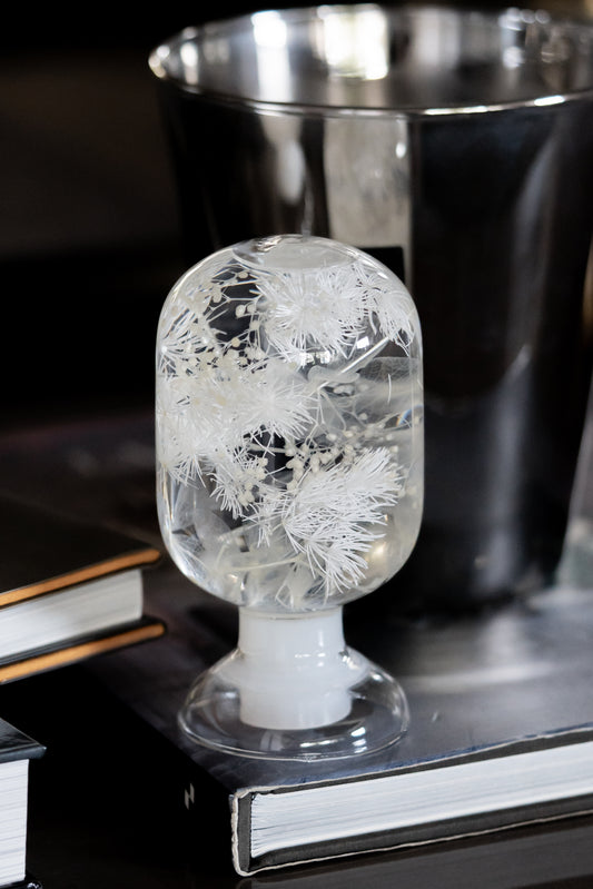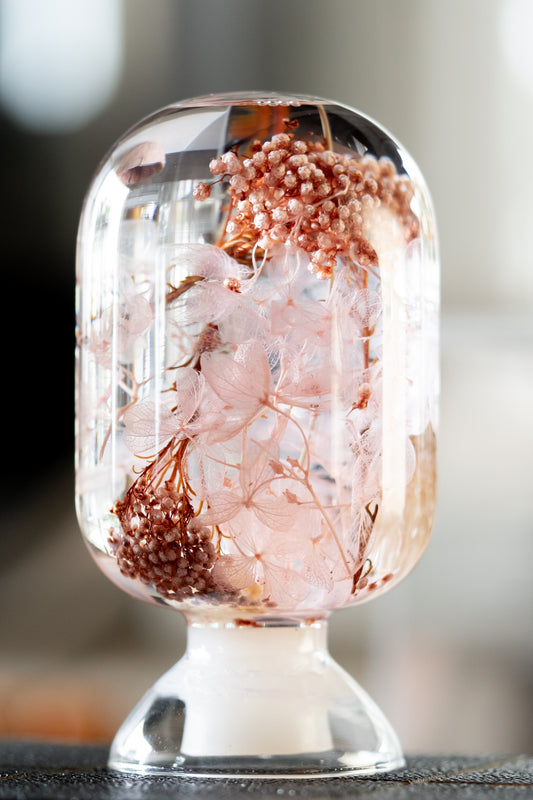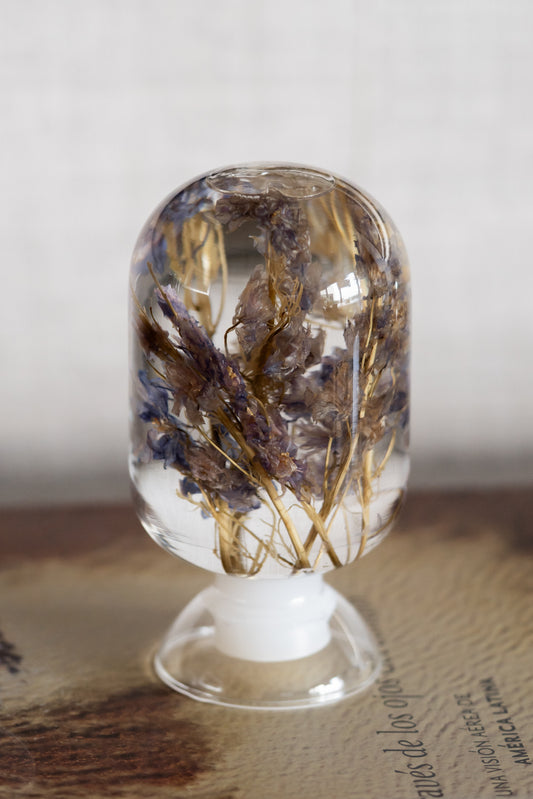 A collection of carefully preserved flowers contained within bottles, each designed to capture the essence of the natural world. Each fragment encapsulates a story of its own, preserved for a long lasting period of time.